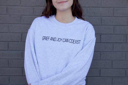 GRIEF AND JOY CAN COEXIST EMBROIDERED HEAVY BLEND UNISEX CREWNECK